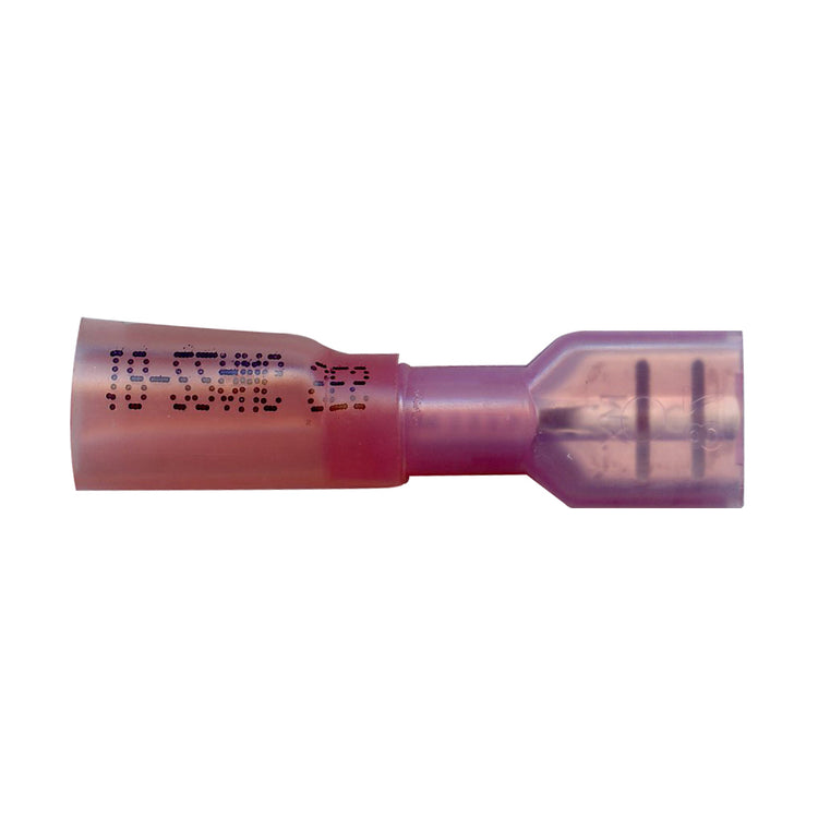 This 22-18 AWG fully insulated female quick disconnect offers a secure, sealed connection for automotive and equipment wiring. The 0.250" tab fits standard male terminals, while the adhesive-lined heat shrink insulation ensures superior moisture protection and mechanical strength in demanding environments.