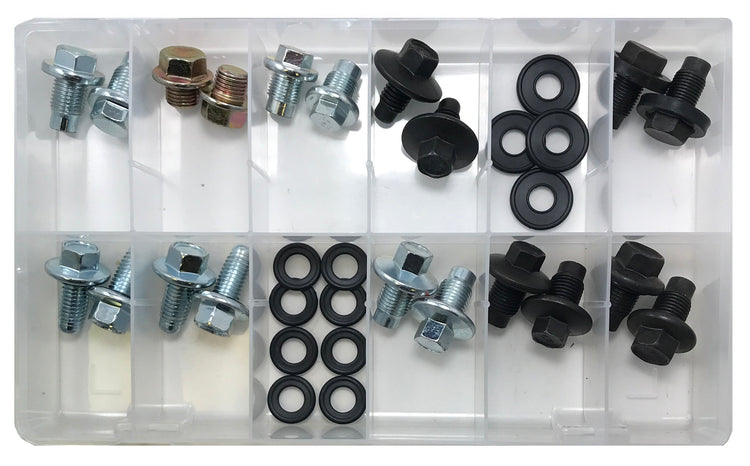 32 Piece Large O.E Style Oil Drain Plug and Gasket Assortment Box Kit - 11 Sizes - Made in the USA