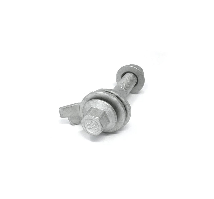 Camber bolts can be used to adjust the amount of camber (vertical alignment) of a wheel. These bolts can be used to compensate for miss-alignment due to damage to suspension components or to intentionally create camber for an ascetic or performance effect.
