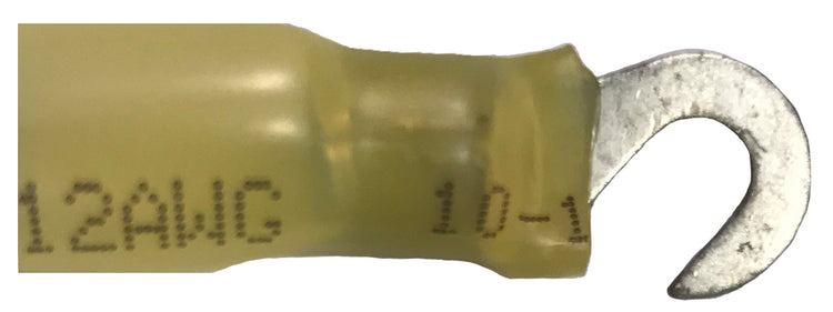 Heat Shrink & Crimp Yellow Hook Terminal 12-10 Gauge #10 Stud - 10 to 500 Pack