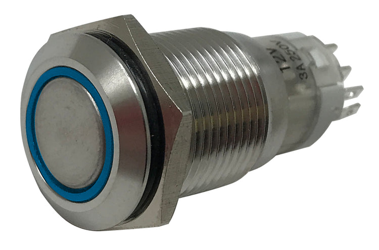 LED Latching Push Button Switch - 12V Stainless Steel - On/Off - 16mm Mount